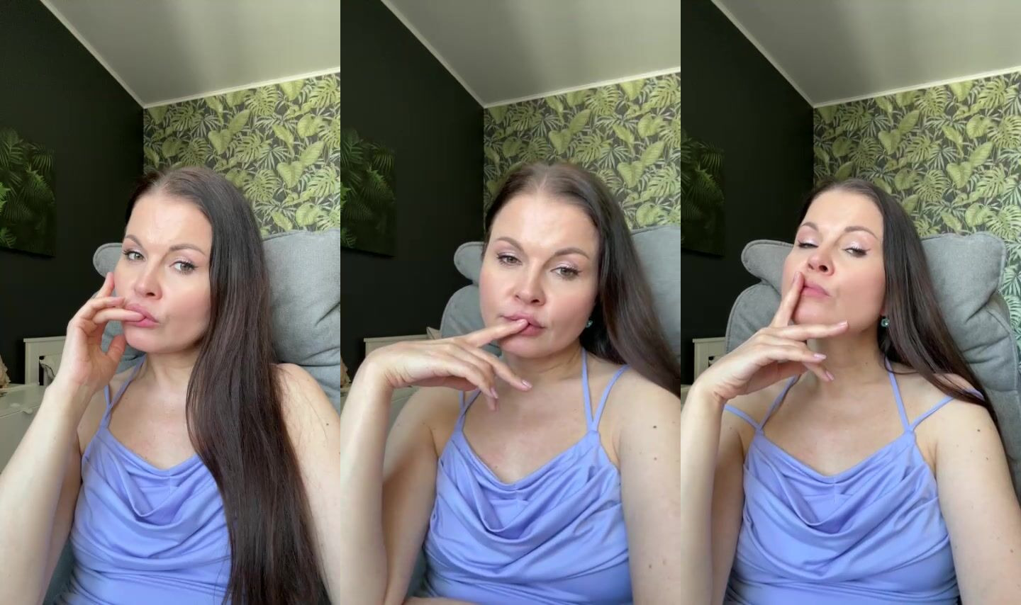 Cheeky smile teasing in playful webcam video.
